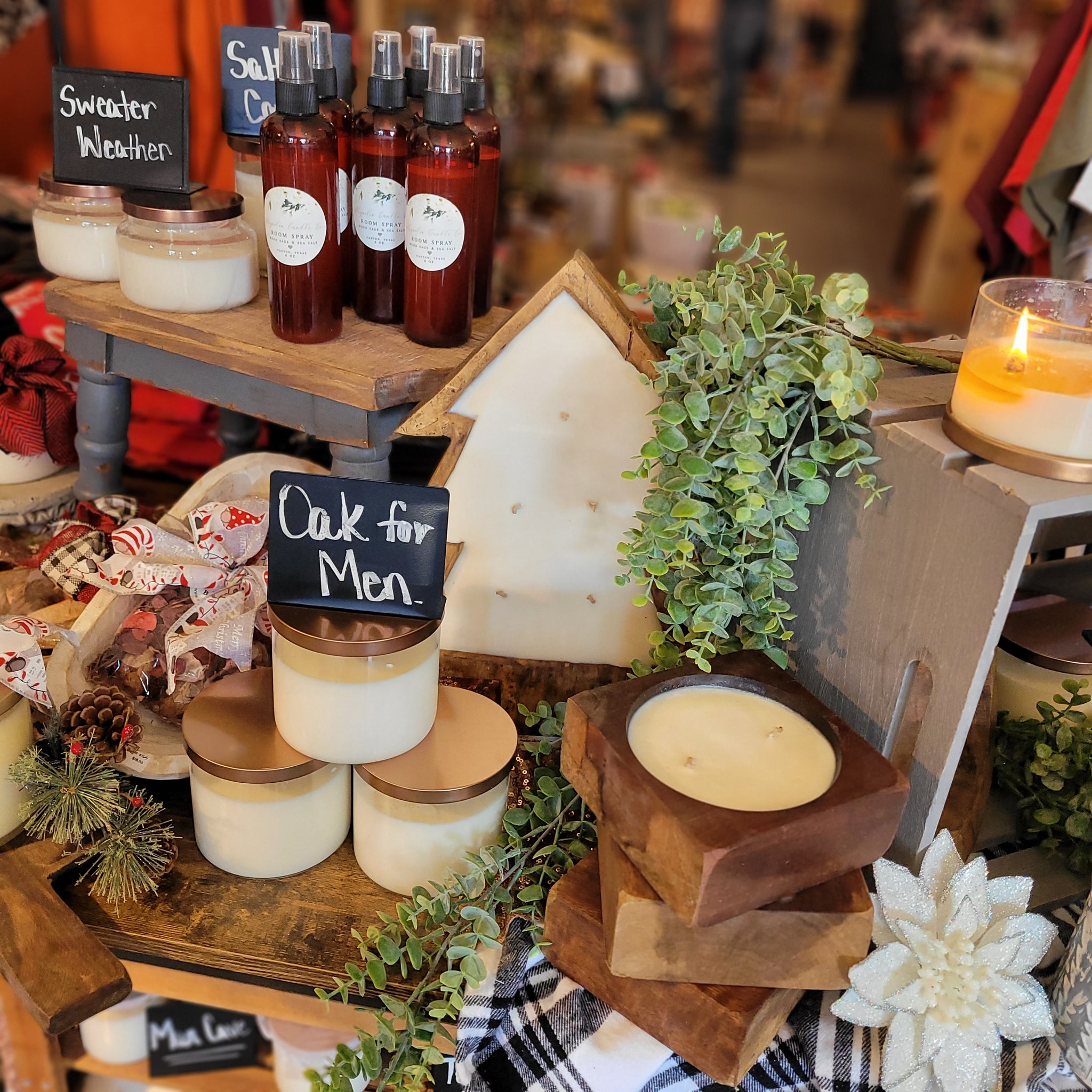 Our candles are made from THE FINEST INGREDIENTS AVAILABLE! We start by using eco-friendly, American grown Soy Wax and combine it with a carefully formulated blend of the finest essential and fragrance oils to create a truly unique candle experience. Each of our candles are hand poured in our studio in Grand Saline and are phthalate free, paraffin free, lead free and dye free.